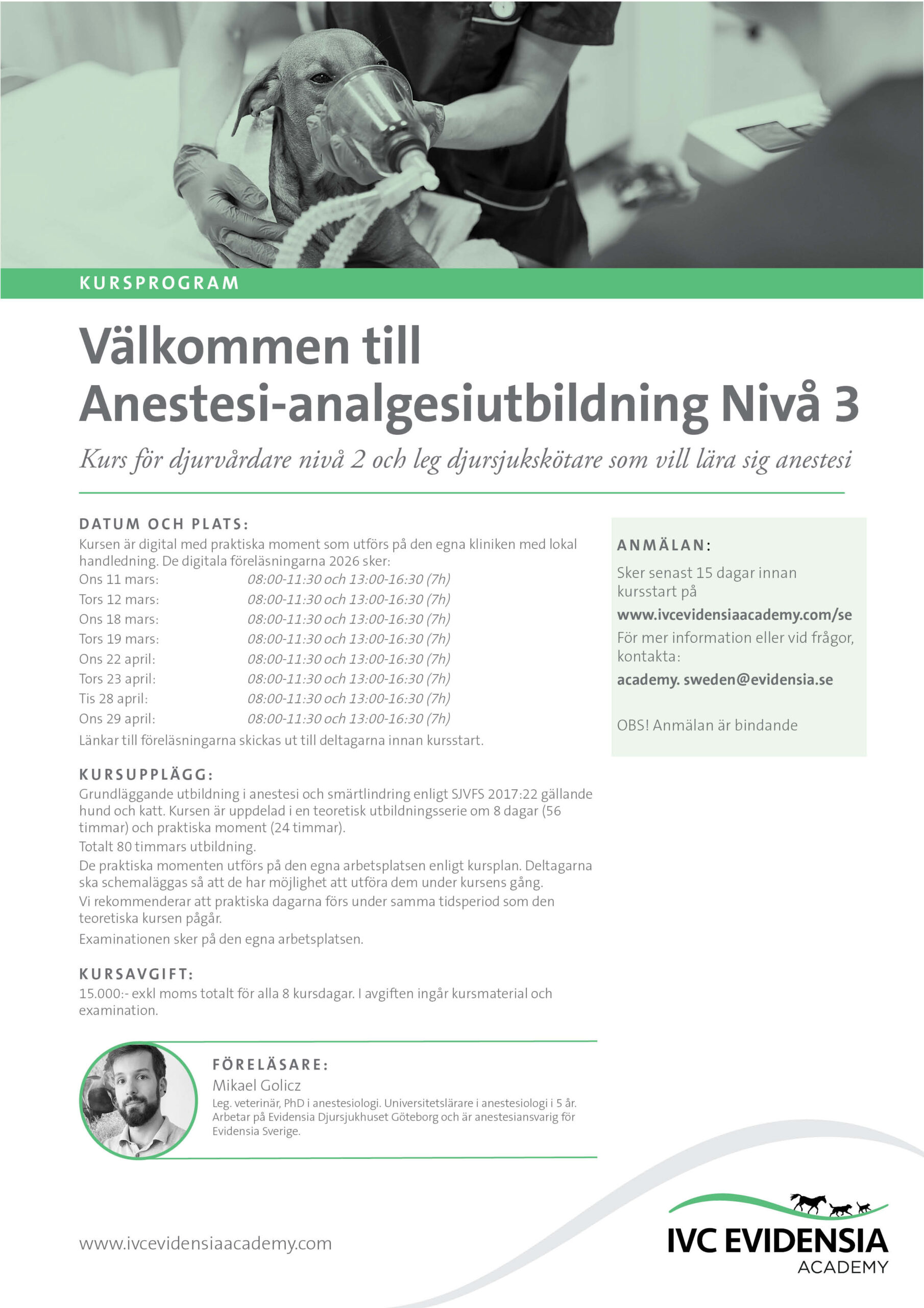 Vi vill informera om att kursen kan skjutas på eller ställas in om det kommer nya direktiv från Jordbruksverket gällande behörighet för Nivå 3.